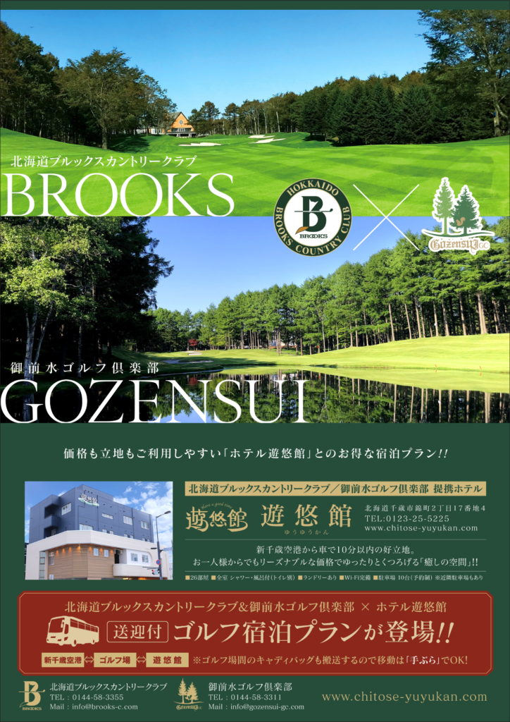 例年大好評の 北海道ブルックスカントリークラブ/御前水ゴルフ倶楽部のプレーと宿泊がパッケージされた送迎付きプラン を今年も取り扱いを開始いたしました。