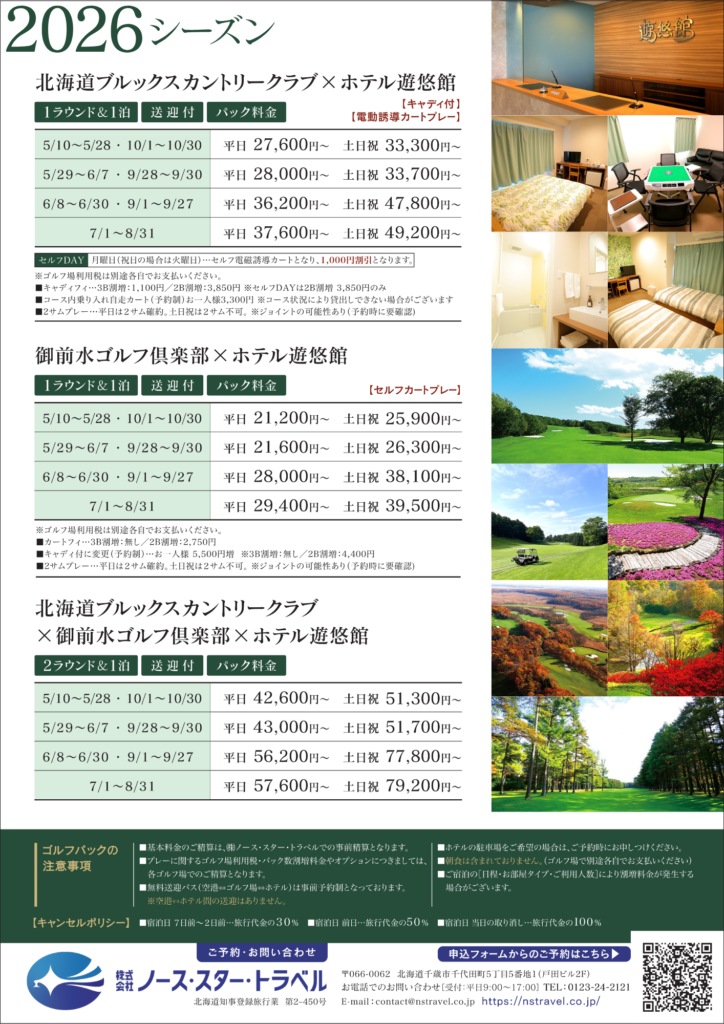 今年はあわせて ポルトムインターナショナル北海道宿泊パッケージ も取り扱いを始めております。 ぜひ今年も便利な送迎付きパッケージで北海道でのゴルフプレーをお楽しみください!